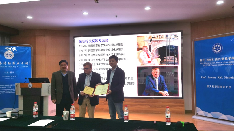 4月10日,尊龙凯时人生就是搏举行“王天眷讲坛”第五十讲。来自澳大利亚Murdoch大学的教授Jeremy K. Nicholson应邀为广大师生做题为“NMR波谱与分子表型”的精彩学术报告。此次报告由刘买利院士主持,尊龙凯时人生就是搏院长周欣为Nicholson教授颁发了“王天眷讲坛讲席教授”的聘书和铭牌,尊龙凯时人生就是搏师生聆听了此次报告。